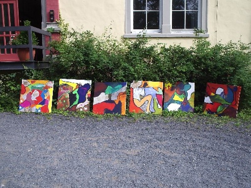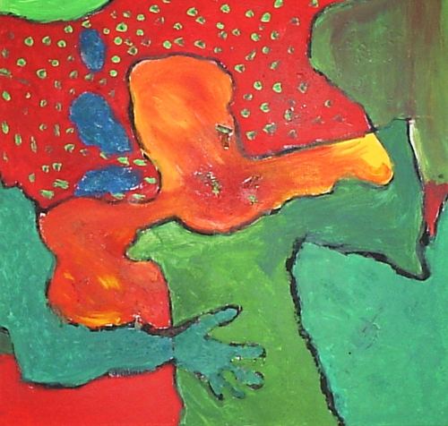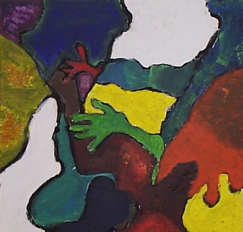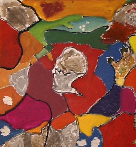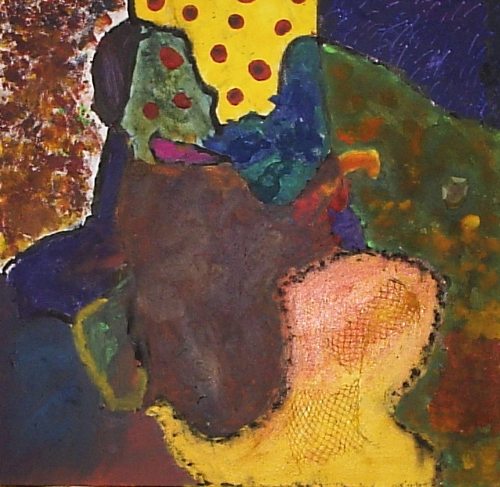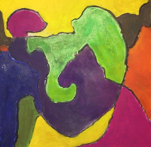 Maltechnik: Acrylfarbe und Wachskreide vermischt